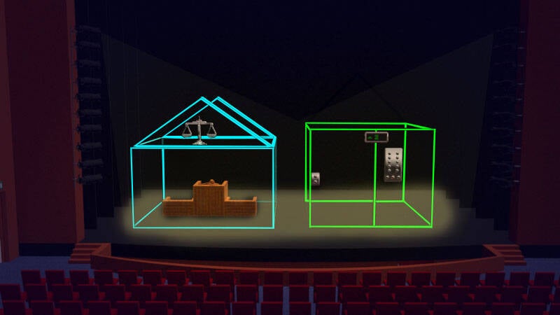 For our design in practice, I created a set concept for The Farewell Theatre Company's played Trapped. The set needed to be easily transportable and done on a budget. The sets consist of outlines that create the environments the actors are in. I chose to create a simple set like this as would be easily transportable and cost effective.